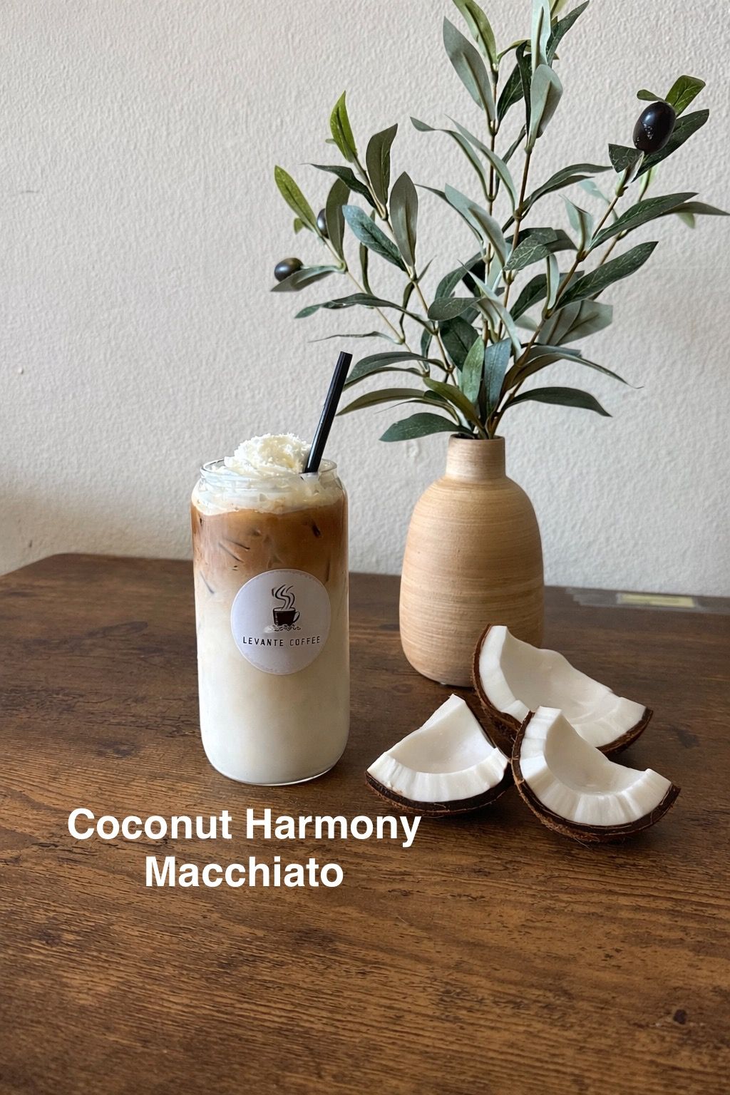 Organic coconut shreds in coconut syrup infused milk topped with smoothly extracted Espresso, whipped cream, and coconut shreds.
